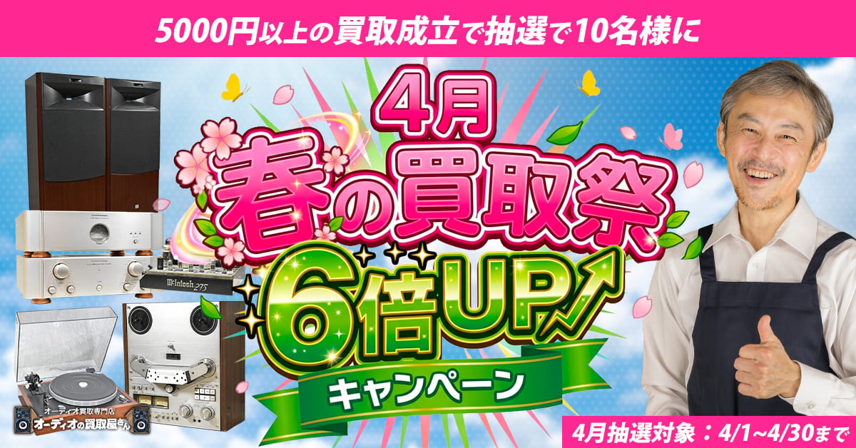 おすすめNo.1の「オーディオの買取屋さん」では、現在「買取金額が6倍」になるキャンペーンを実施しています! 4月1日(水)~4月30日(木)の期間限定のお得なキャンペーンなので、この機会にぜひご利用ください! |