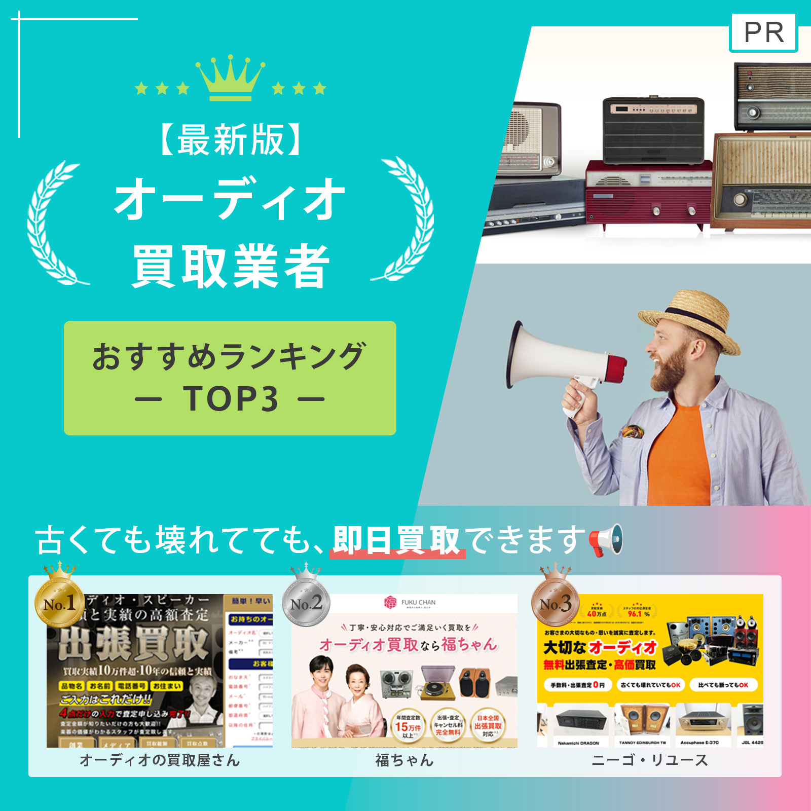 このサイトでは優良のオーディオ買取業者を3社のみランキング形式で紹介していますので是非ご参考にしてください。