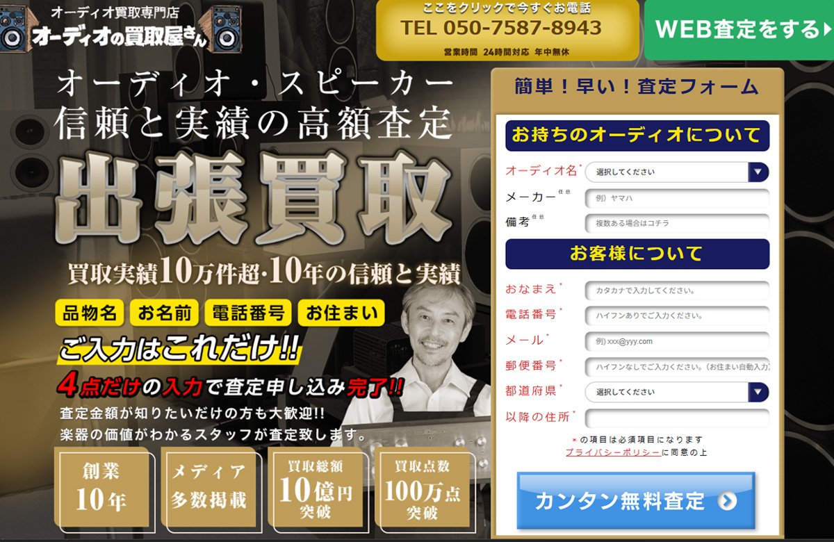 お電話から最短30分でお客様ご指定の場所へお伺いいたします。オーディオをその場ですぐに査定し、ご提示させていただいた査定金額にご納得いただければ、その場でお支払いいたします。